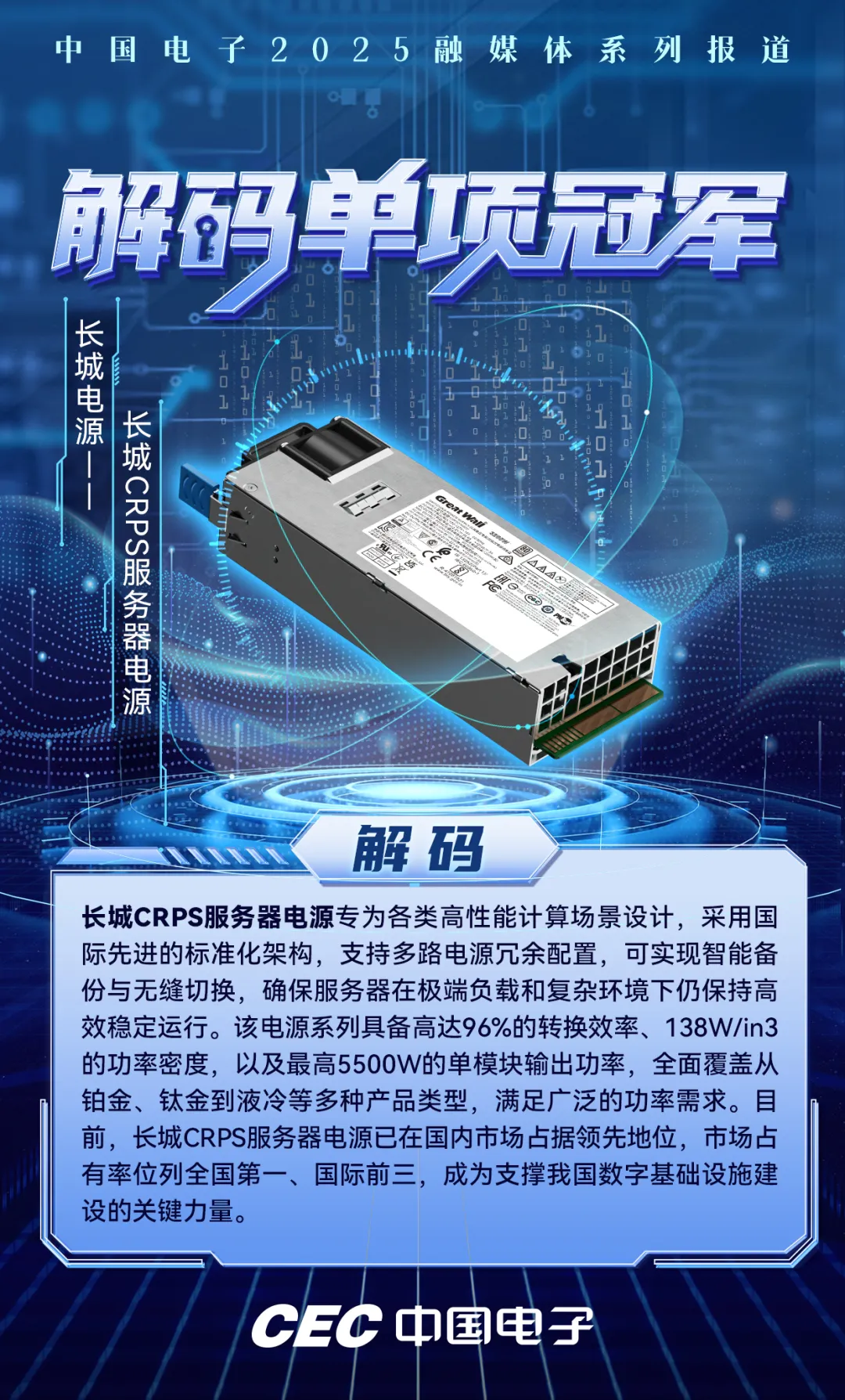 解碼單項(xiàng)冠軍|長(zhǎng)城CRPS服務(wù)器電源:硬核供電王,筑牢數(shù)字基建能源根基